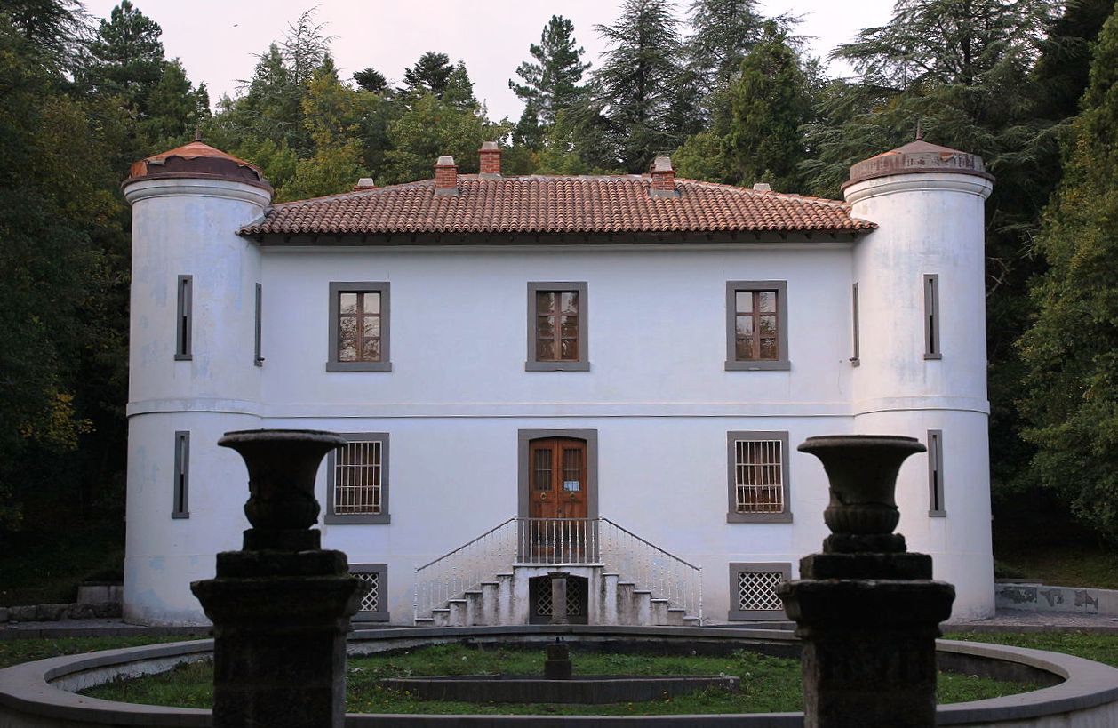 In Bolotana, in Zentralsardinien, umrahmt ein Garten mit einheimischen, neben exotischen Arten und ungewöhnlichen Baumkreuzen wachsenden Pflanzen, eine schöne englische Villa