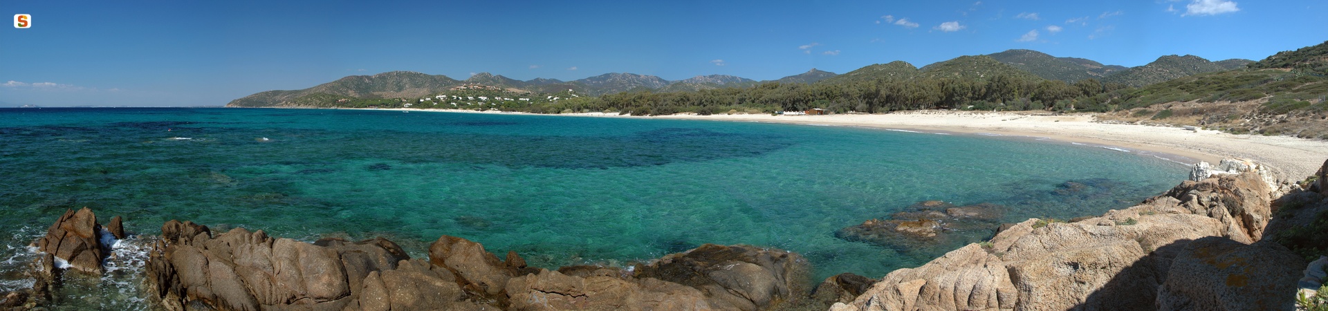 Una amplia extensión de arena suave, mar cristalino, vegetación por todas partes, todas las comodidades al alcance de la mano: he aquí una joya del Golfo de los Ángeles, a dos pasos de Cagliari