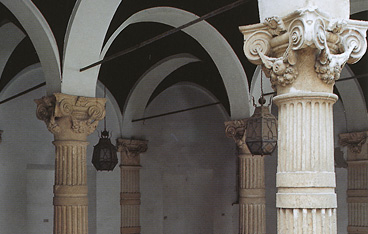 在门廊被划分为11个海湾拱形拱腹分开。穿过一道门只需通过一个窗口,输入用作花园的明亮的庭院。周边有两个商场与多利安壁柱支持的圆拱门.跨度为矩形和拱形。最重要的领域是学院,宽的矩形客房配有拱形天花板。