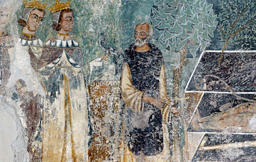 上述修复工程包括壁画,可以在教堂内部的三四面墙上欣赏到。并且在教堂的正面也保留着一些壁画,据考证均为十五世纪的艺术作品. 据最新研究考证,壁画的作家为十四世纪来自托斯卡纳的画家的名作。