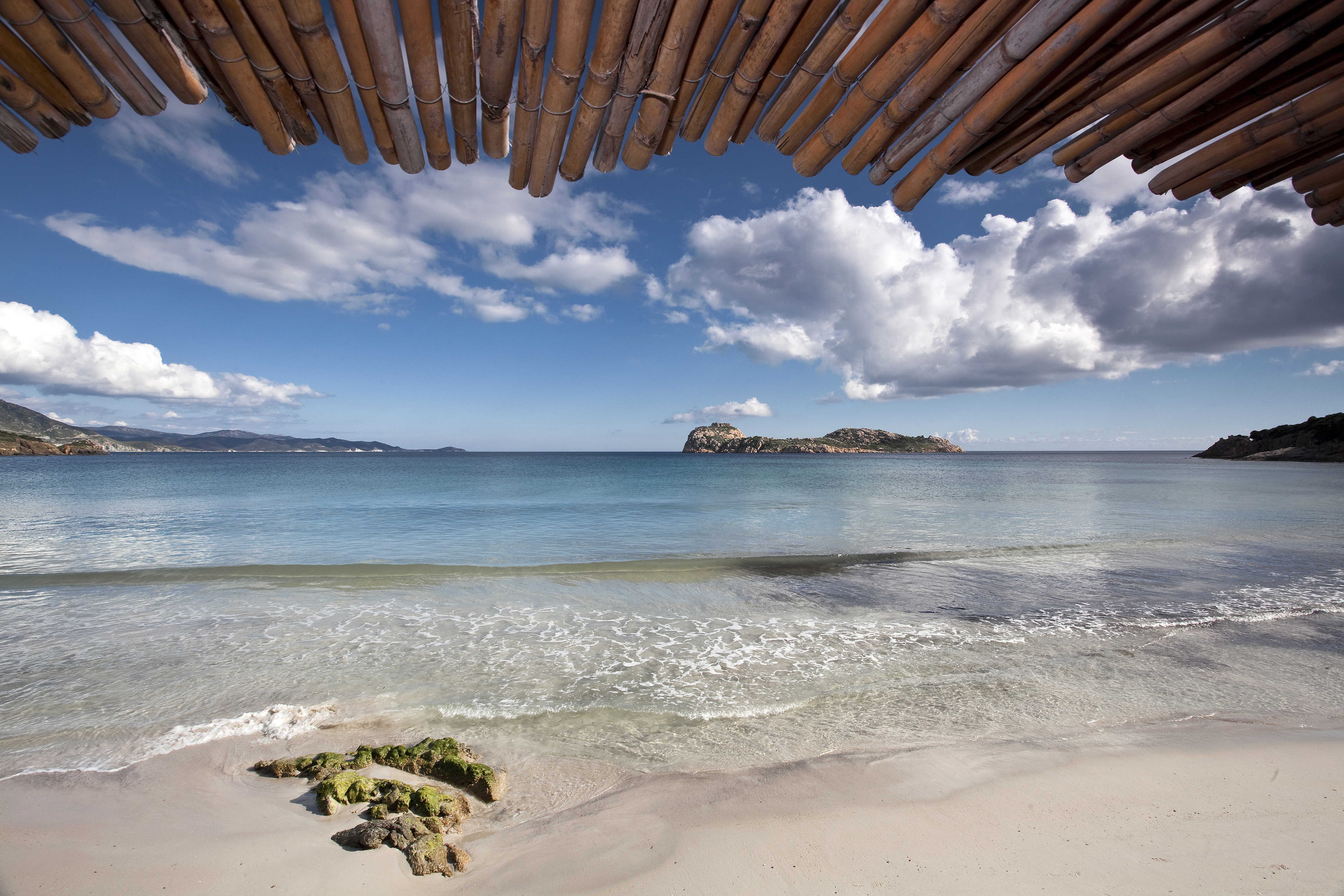 La plage de Porto Tramatzu est faite de fin sable blanc. Face à elle se dresse l'Isola Rossa, un rocher recouvert de maquis méditerranéen
