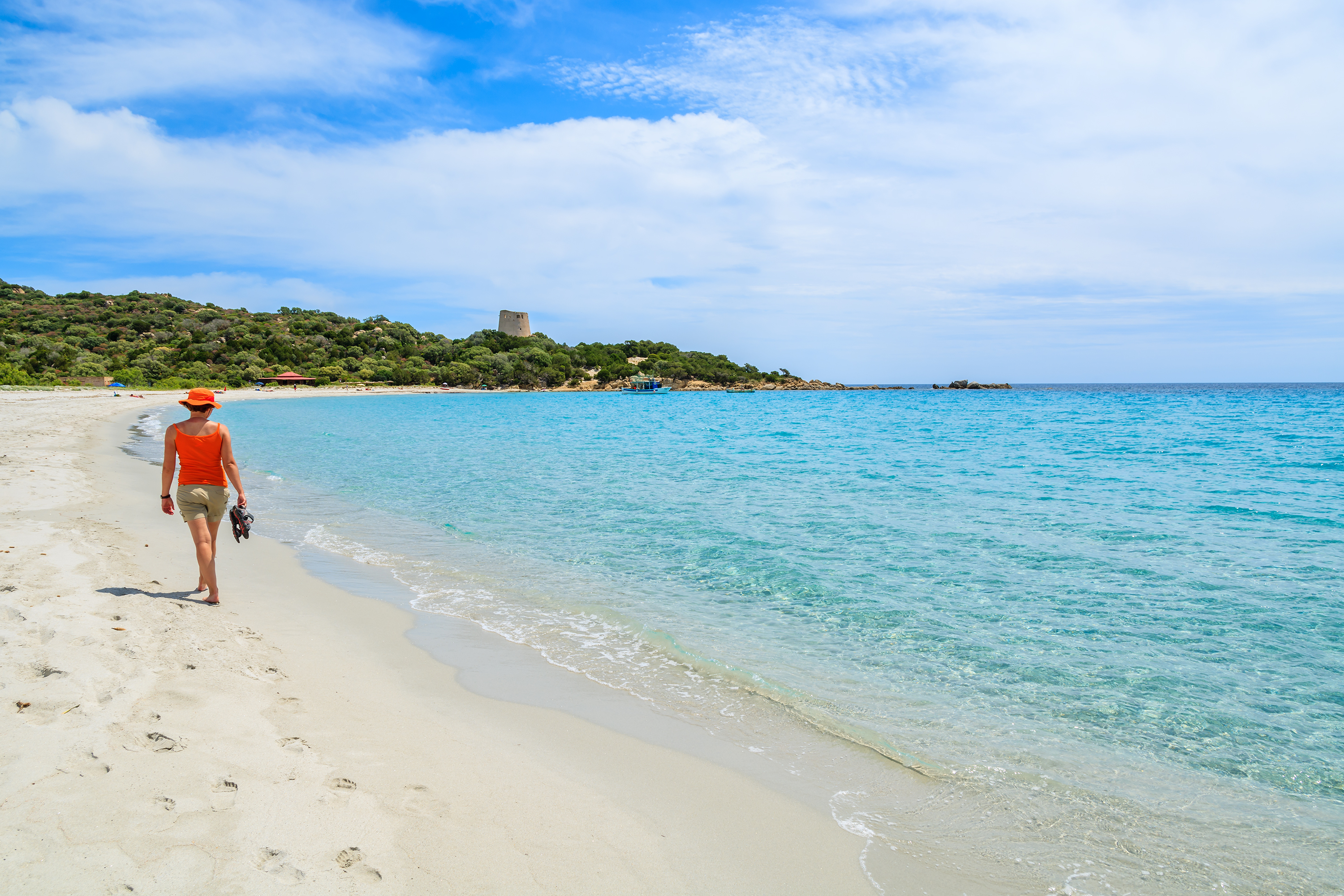 Cala Pira è la prima spiaggia dei tredici chilometri di magnifico litorale di Castiadas, un susseguirsi di scenari di sabbia bianca e mare dalle tonalità azzurre: incontrerai altre spiagge da incanto a nord della baia, in uno dei tratti costieri più belli del Mediterraneo. A iniziare da Cala Sinzias, distesa di due chilometri di sabbia, soffice e bianchissima, che si immerge in mare segnalato da Legambiente fra i più limpidi dell’Isola. Alle spalle ginepri, lentischi, olivastri, pini ed eucalipti. È la spiaggia degli amanti dei viaggi on the road, attrezzata per camper e con campeggi. Suo naturale proseguo è la Marina di San Pietro, altri tre chilometri di sabbia fine con riflessi dorati che si affacciano sul mare dalle sfumature cangianti. Il suo fondale è perfetto per snorkeling e immersioni. Oltre sorge la stupenda Cala di Monte Turno, un’incantevole baia di sabbia morbida, scelta come spiaggia più bella del 2018 in Italia dagli esperti di Skyscanner, sito web leader nel mondo delle vacanze. A renderla particolarmente suggestiva è il contrasto tra celeste dell’acqua cristallina, il verde della lussureggiante vegetazione, lo scuro della roccia vulcanica del colle a ridosso, ‘spezzati’ dal bianco acceso della sabbia. La spiaggia è apprezzata da wind e kite surfer. Ancora più a nord inizia il tratto di Costa Rei – due chilometri - appartenente a Castiadas: dall’insenatura di sant’Elmo alla caletta intima di Cannisoni. Poi la lunga e bellissima Santa Giusta, incorniciata da scogliere levigate, che arriva sino al poetico ‘scoglio di Peppino’, una roccia larga e piatta, le cui sembianze ricordano una grande tartaruga. Rappresenta il confine costiero con Muravera, da qui iniziano altri otto chilometri di spiaggia di sabbia fine e dorata. A spiagge tropicali e oasi naturalistiche, Castiadas, una delle perle del sud-est, combina produzioni agroalimentari di qualità, derivanti da un vasto e fertile territorio, raccontato dal museo del territorio, con sede nell’ex colonia penale.