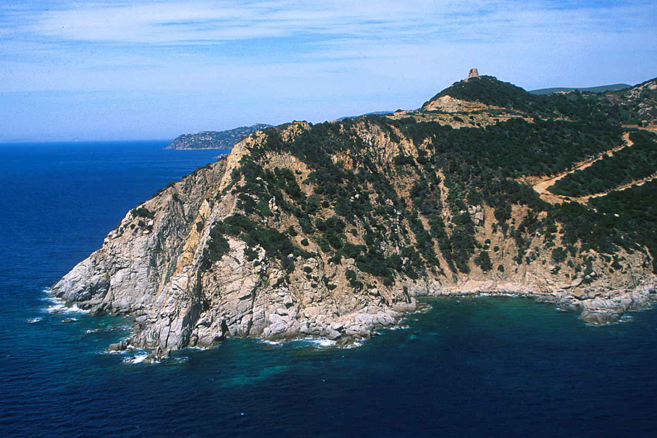 Nella parte più orientale del golfo degli Angeli si protrae verso il mare un promontorio roccioso ricoperto da fitto verde mediterraneo: alla sua destra si distende un’immensa distesa di sabbia dorata, alla sinistra invece una serie di calette di sabbia bianchissima incastonate nella scogliera. Sopra il promontorio, chiamato Capo Boi, a 120 metri sul livello del mare, sorge un’antica torre di avvistamento, che da quasi cinque secoli domina questo panorama spettacolare. Il capo rappresenta il limite occidentale dell’area marina protetta di Capo Carbonara, nonché il confine litoraneo tra Campidano e Sarrabus, e rientra nell’enclave costiera del Comune di Sinnai.