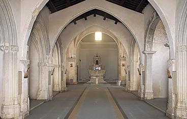 内部分为一个大殿和具有深度的小殿堂。其中这些小殿堂被打开时,在不同的时间,作为小礼拜堂使用,第四个小殿堂坐落在右侧,大殿为礼拜用堂,教堂的耳堂不太深的教堂与建筑物的主体连接位于第二个教堂上的南部并被分成两个托架。目前还没有文件或铭文记载本建筑,教堂原始开放的不同阶段的精确年表,以及修复历程,目前我们只能通过风格而进行推测和判断。