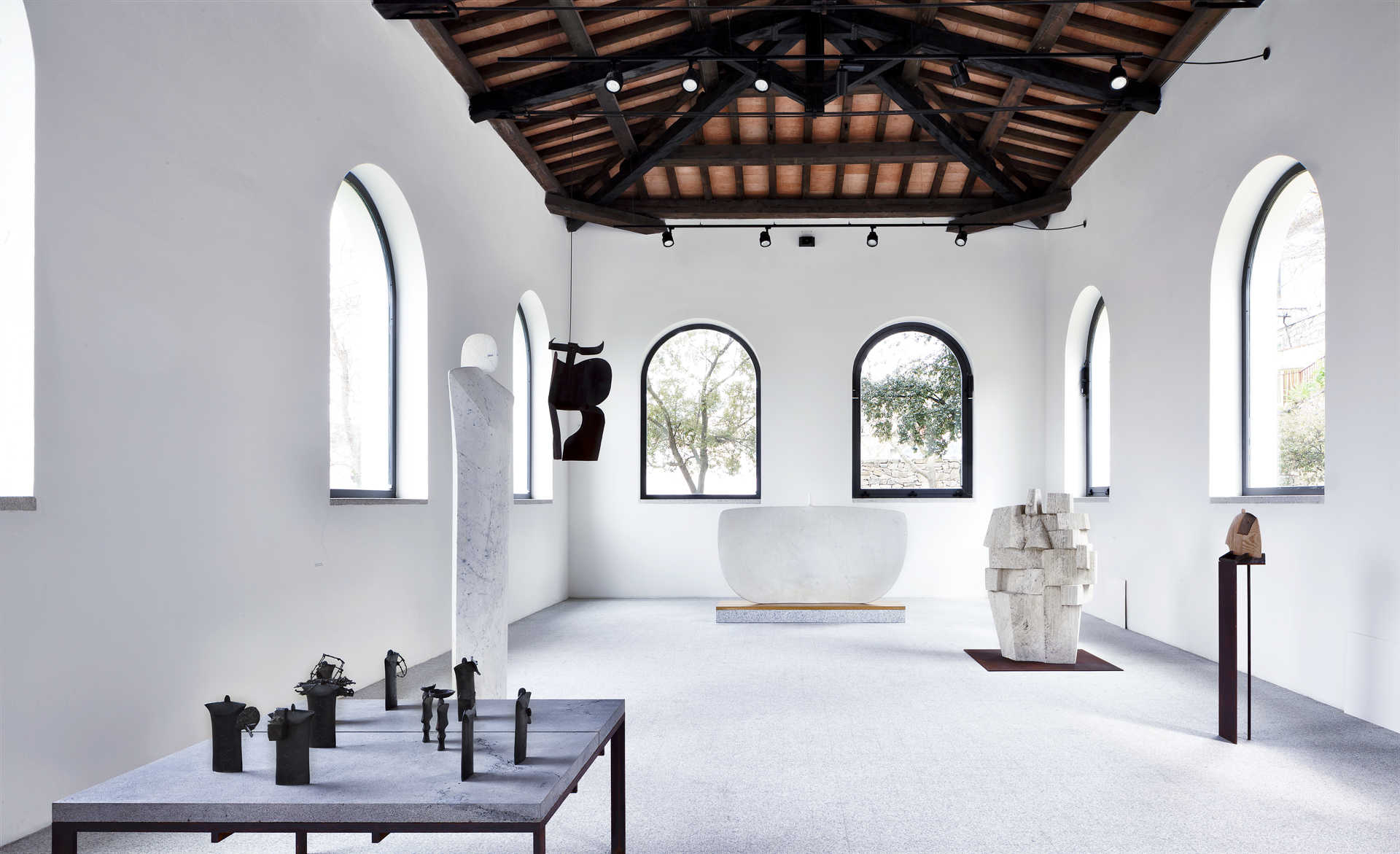 La scelta espositiva iniziale della vedova dell’artista, Ruth Guggenheim, ha privilegiato la fase finale del suo percorso, il ritorno alla statuaria, con la serie di ‘madri’ e ‘vedove’, e alla scultura tradizionale. Poi si sono aggiunte piccole opere in terracotta degli anni Sessanta e Settanta (letti, spiagge, piscine), lavori precedenti in lamiera ritagliata e modellata, una selezione pittorica e modelli per progetti pubblici (rilievi realizzati col sandcasting e modelli tridimensionali per monumenti), più una raccolta di opere grafiche. Le mostre temporanee, invece, sono incentrate sul rapporto fra arte, architettura e paesaggio, con focus su artisti vicini a Nivola, tra cui Le Corbusier, Pollock, Steinberg. Il museo in origine comprendeva solo lo spazio dell’ex lavatoio, con copertura a capriate e aperture che illuminano l’interno. Nel 2004 è stato realizzato un padiglione che combina l’esterno con arcate che tripartiscono l’interno. Nel 2012 è stata aggiunta una terza struttura, adagiata sul declivio della collina. Piazzale, attraversato da una canaletta d’acqua proveniente dalla fonte su Càntaru, e parco, inaugurato nel 2009, circondano il museo e, con terrazzamenti, ne collegano i padiglioni posti a vari livelli e ospitano alcune sculture.
