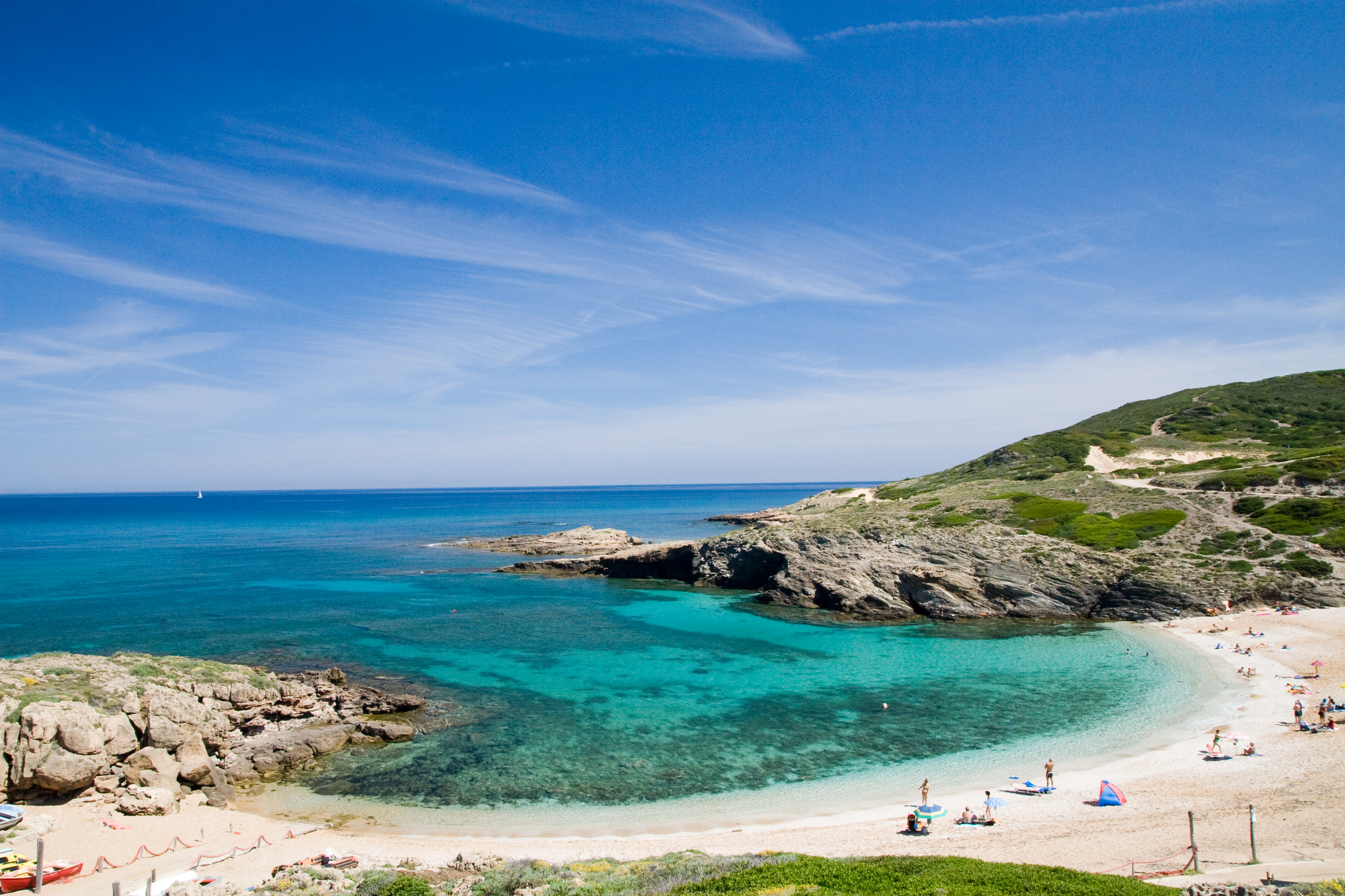 L’aspetto della spiaggia è rude e selvaggio, ma raramente è affollata, ampiamente riparata dal maestrale e attrezzata con parcheggio e punti ristoro, inoltre il fondale è basso e prevalentemente sabbioso: caratteristiche ideali per le famiglie. Mentre gli amanti delle immersioni saranno affascinati dalle meraviglie sott’acqua. Attorno un sistema di dune si allunga fino all’entroterra, ricoperto di vegetazione. Anche le scogliere che la delimitano risplendono di verde mediterraneo, che svetta sulle rocce grigiastre, entrambi in contrasto con i colori del mare: una cartolina da non perdere. Anzi, è consigliabile proseguire la giornata anche con un’escursione nelle vicinanze, a Cala Marini Netti e Cala Trincata.