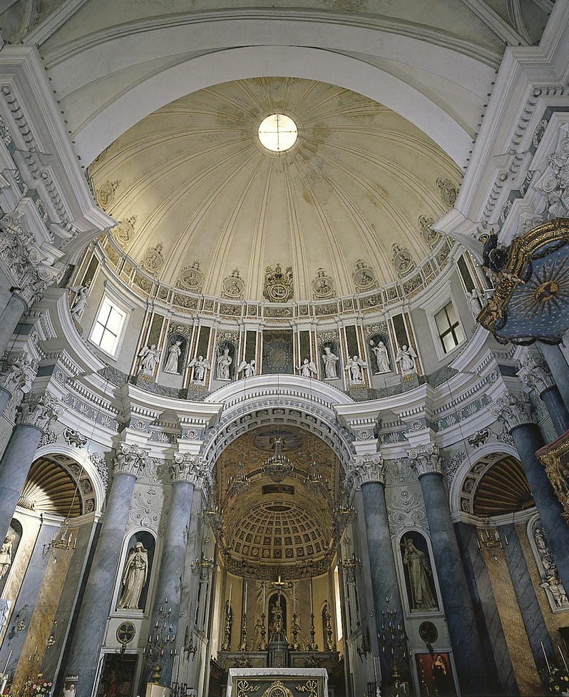 十三世纪外墙三方在水平方向和两个强大的壁柱界定。大门设有一个枋,叉开有一头公牛的雕塑。划分成型框架,并设有一个大魔环同时代的植物。大约在1711年,在大门和魔环行前冲打开一条路径。