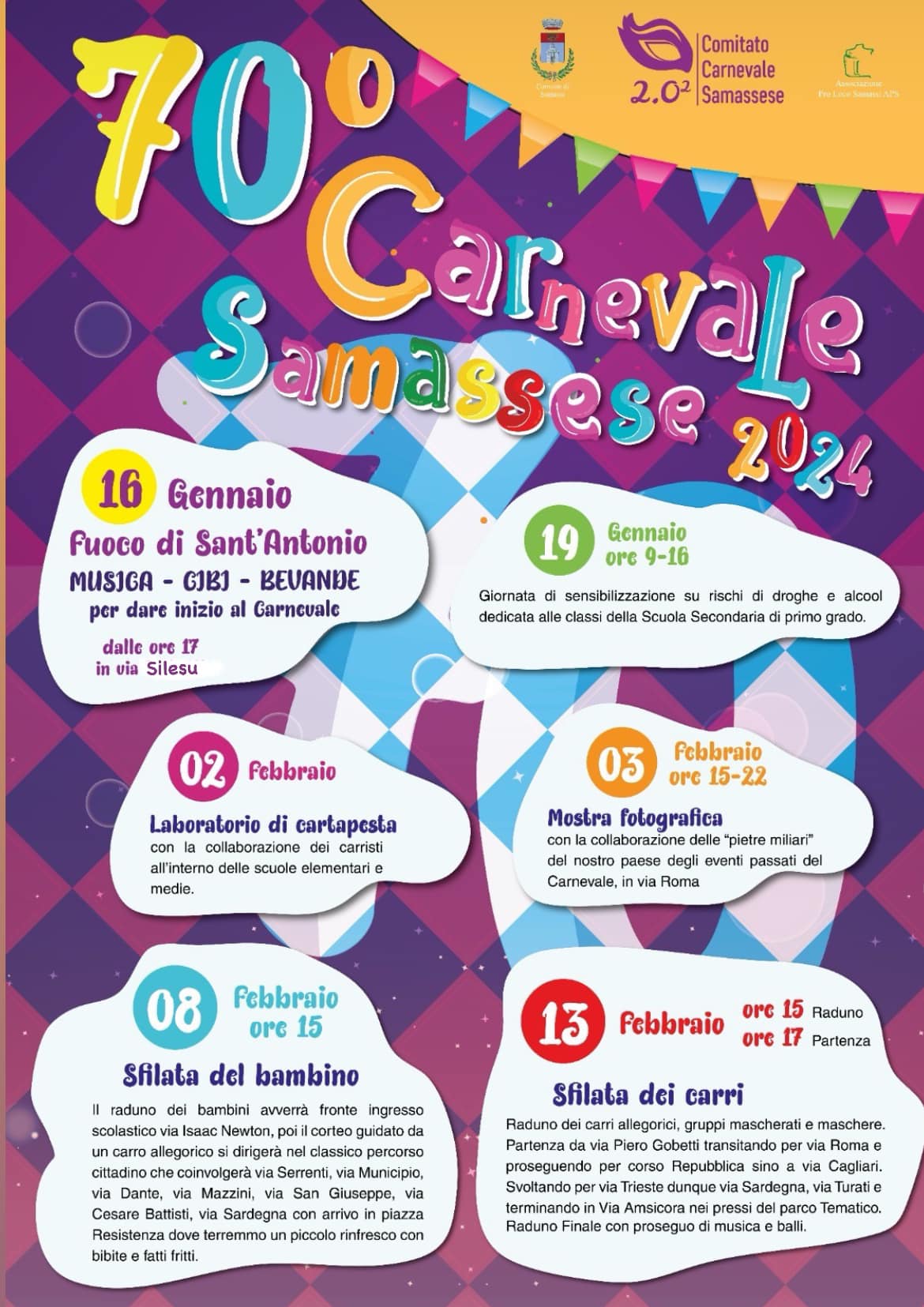 Per maggiori info, visita la pagina facebook del Comitato Carnevale Samassese 2.0.