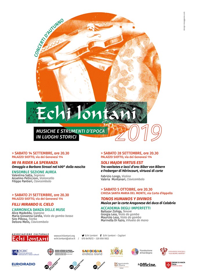 Sabato 14 settembre a Cagliari il festival Echi lontani, ideato con lo scopo di far conoscere il prezioso patrimonio della musica antica, ritorna con una sezione intitolata Concerti d’autunno. Sino al 5 ottobre saranno quattro appuntamenti con alcuni dei nomi più interessanti del panorama nazionale e internazionale.