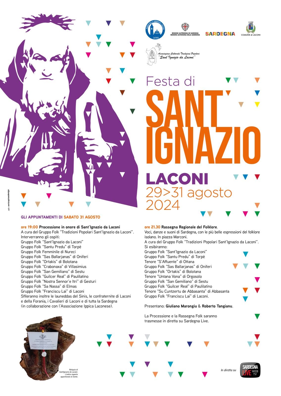 Oltre che per l'ampio programma religioso e civile, l'appuntamento è occasione per visitare i numerosi luoghi di interesse del borgo Bandiera Arancione del Touring Club. A partire dalla casa natale del santo, divenuta negli anni destinazione di pellegrinaggio, al museo di Arte Sacra, passando per parco e castello Aymerich fino al Menhir Museum, per un imperdibile mix di storia, cultura e natura. La giornata clou è quella di sabato 31: alle 19 parte la processione con la reliquia - ovvero la bisaccia - di Sant'Ignazio, giunta dalla chiesa di Sant’Antonio da Padova a Cagliari, adiacente al convento dove trascorse gran parte della sua vita. Partecipano confraternite, gruppi folk, cavalieri, e musicisti. Segue la Rassegna regionale del folklore: voci, danze e suoni di Sardegna con le più belle espressioni del folklore isolano. Lo spettacolo è previsto presso l'anfiteatro comunale dalle 21.30.
