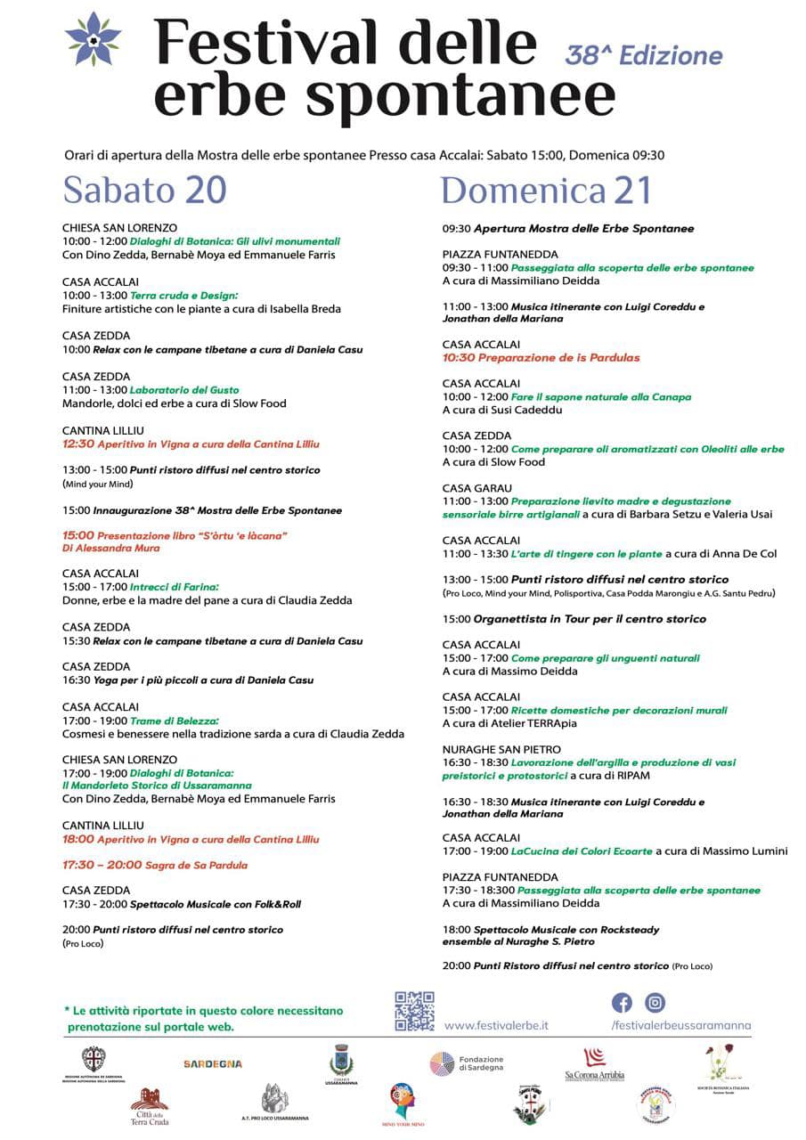 Sabato 20 e domenica 21 aprile, a Ussaramanna si rinnova l'appuntamento col il Festival delle erbe spontanee, giunto nel 2024 alla 38esima edizione.
