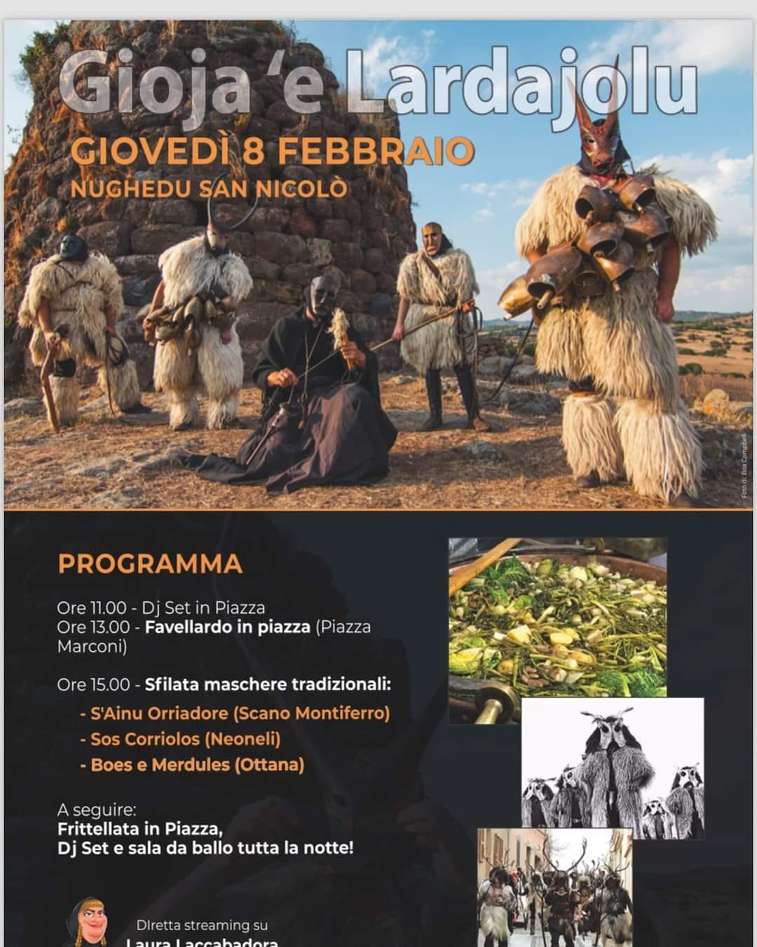 Il 'giovedì grasso' a Nughedu San Nicolò non è solo festa, balli e maschere: nel piccolo borgo logudorese è il giorno dell'ospitalità, dell'accoglienza e della condivisione. Giovedì 8 febbraio il paese si anima per Gioja 'e Lardajolu, una grande festa in piazza dove ognuno è il benvenuto.