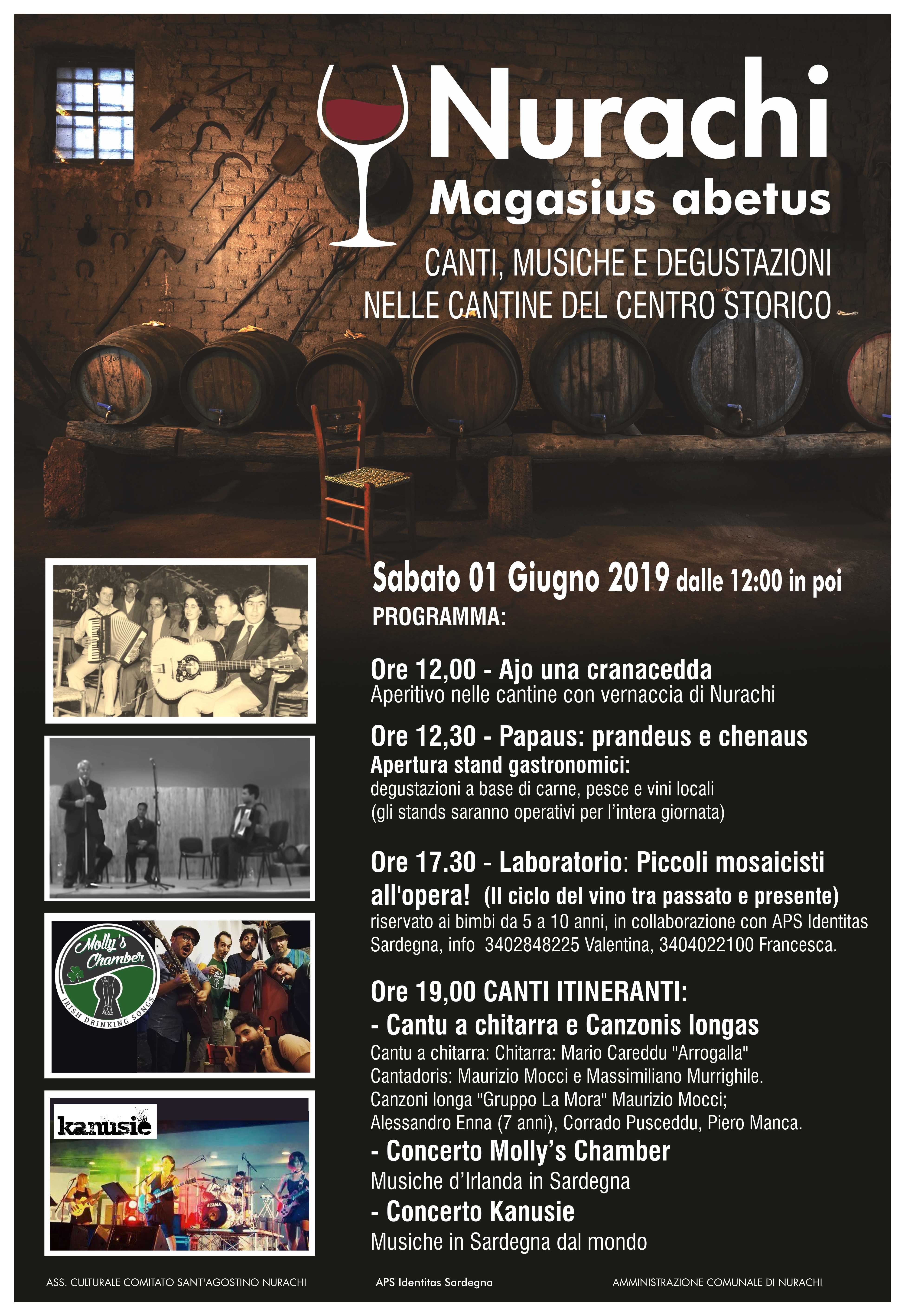 Tra un bicchiere e l'altro nelle varie cantine, si alternano i canti tradizionali "a chitarra" e "a canzoni longa". Il gruppo "La Mora" composto da: Maurizio Mocci, Alessandro Enna (cantadori prodigio di soli 7 anni), Corrado Pusceddu e Piero Manca, si esibiscono con i canti a canzoni Longa. Per i canti a chitarra si alternano: Maurizio Mocci e Massimiliano Murrighile. Mario Careddu "Arrogalla" accompagna con la prestigiosa chitarra.