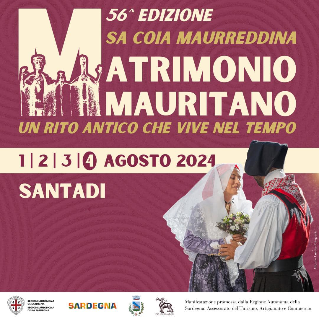 Dal 1 al 4 agosto, Santadi si veste a festa: quattro giorni culminanti con il grande evento di domenica 4, Sa Coia Maurreddina, il tradizionale Matrimonio Mauritano, giunto alla 56esima edizione.