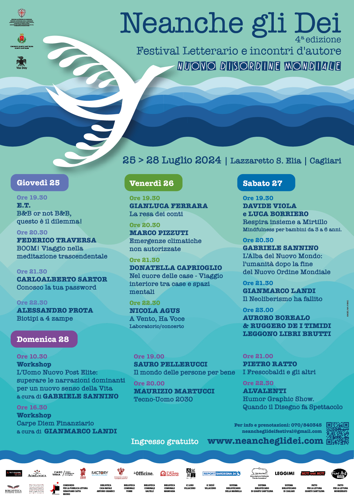 Torna a Cagliari dal 25 al 28 luglio Neanche gli Dei, festival letterario e di incontri d'autore, giunto alla quarta edizione.