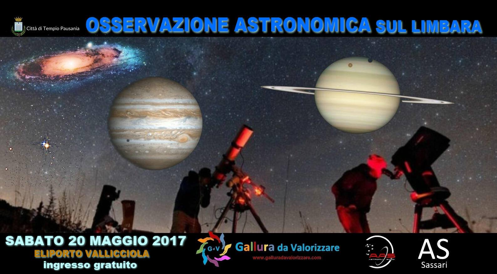 Il 20 maggio 2017 presso l'eliporto di Vallicciola nel comune di Tempio Pausania, alle 18,30, si svolge la Prima Osservazione Astronomica sul Monte Limbara.