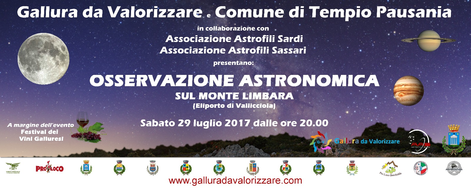 Sabato 29 Luglio 2017, dalle ore 20.00, il Nord Sardegna ospita il secondo appuntamento regionale di Osservazione Astronomica che si svolge in Gallura, sul Monte Limbara, presso l'Eliporto di Vallicciola.