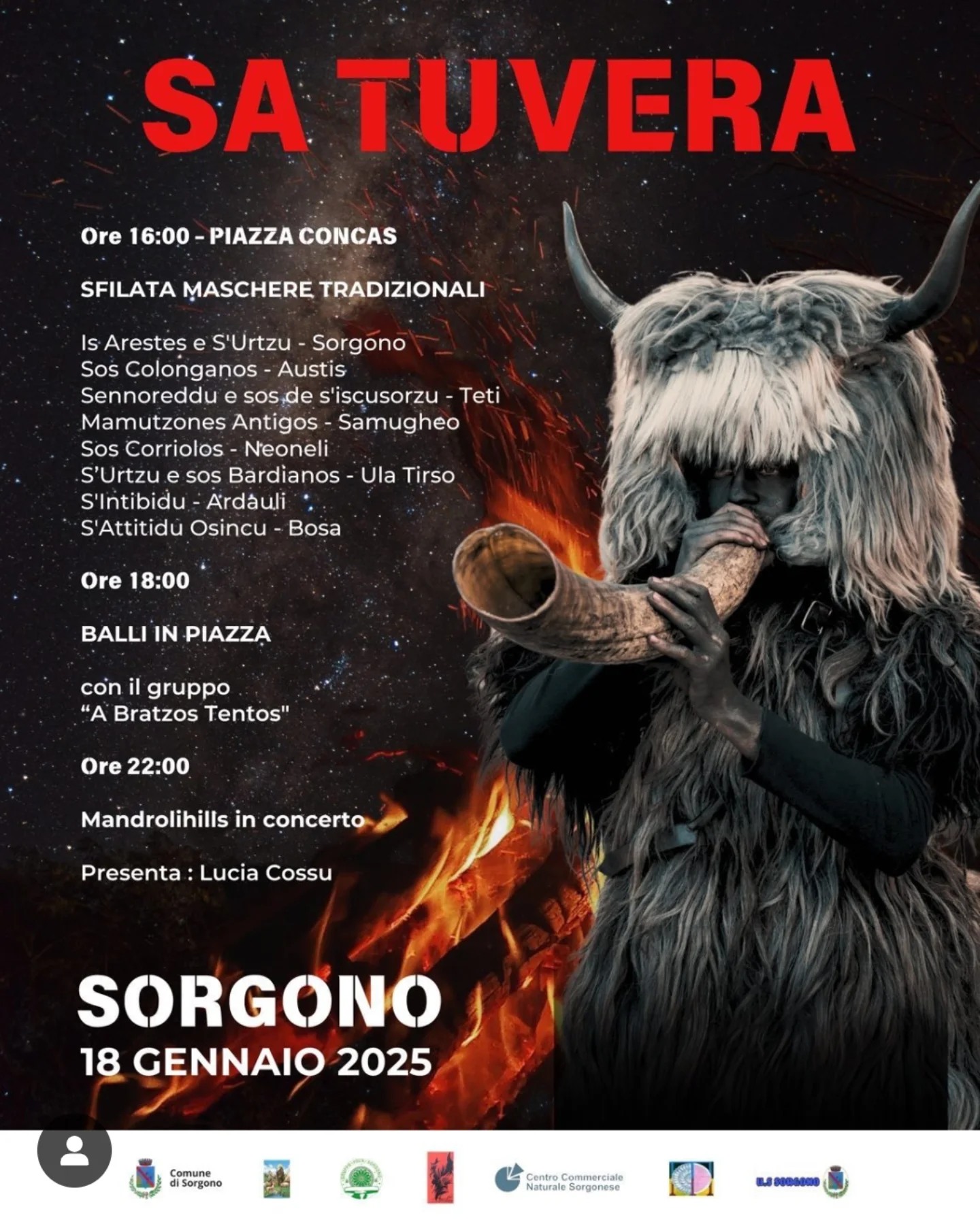 Sorgono celebra l'inizio del carnevale tradizionale sardo con il rito del falò e con l'uscita di alcune tra le più pittoresche maschere tipiche isolane: sabato 18 gennaio il borgo del Mandrolisai, situato al centro della Sardegna, accende Sa Tuvera.