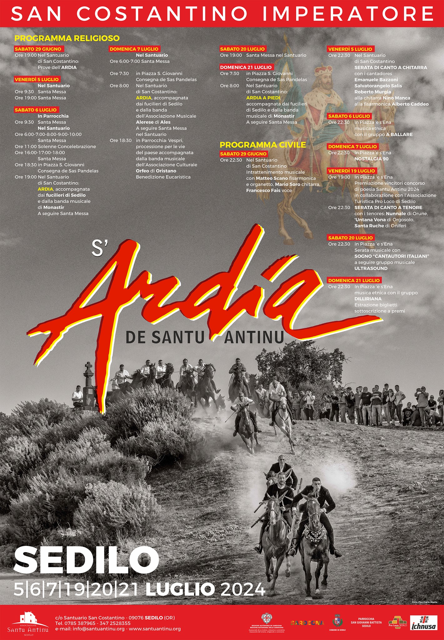 Giovedì 6 e venerdì 7 luglio torna l'appuntamento con uno degli eventi più suggestivi della tradizione identitaria sarda: a Sedilo, nella cornice del santuario di San Costantino imperatore, si svolge la spettacolare Ardia.