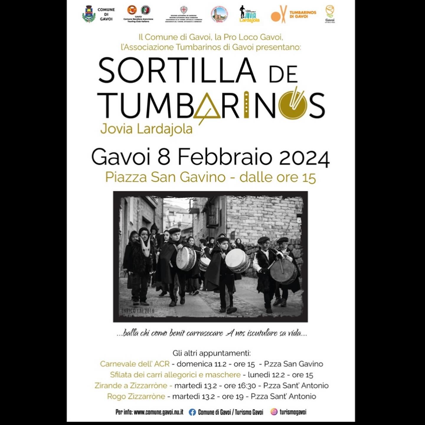 Giovedì 8 febbraio le strade di Gavoi si riempiono di ritmo, suoni, festa e colori. Uno dei carnevali più 'musicali' della Sardegna rinnova il suo appuntamento nel borgo barbaricino con sa Sortilla de Tumbarinos.