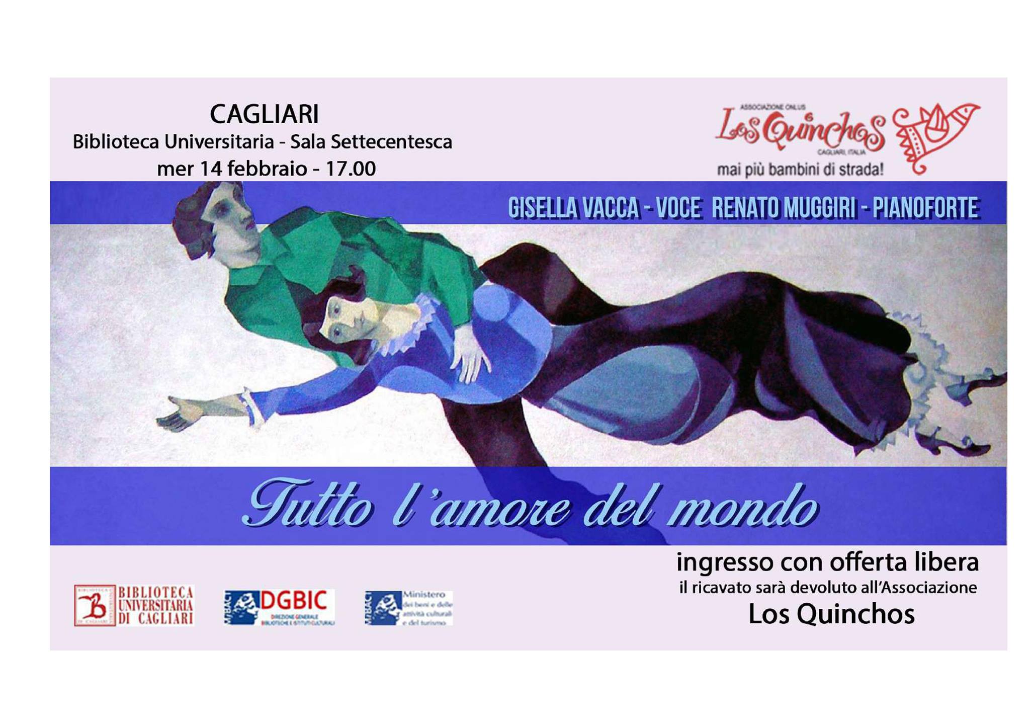 Il 14 febbraio 2018 nella fantastica cornice della Sala Settecentesca della Biblioteca Universitaria di Cagliari si svolge Tutto l'Amore del Mondo, canti d'ogni tempo e d'ogni luogo.