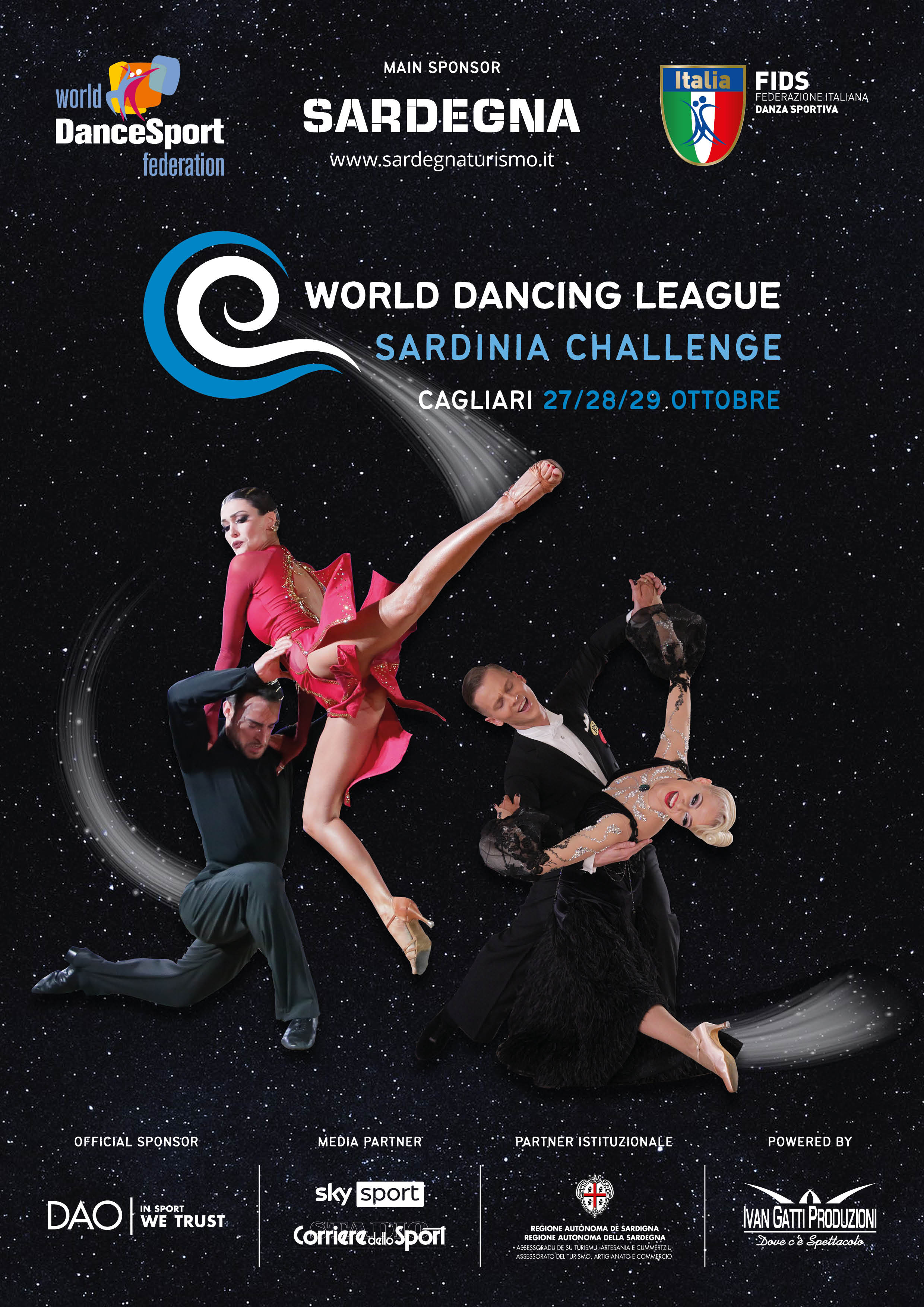 La grande danza sportiva torna a fare tappa in Sardegna: da venerdì 27 a domenica 29 ottobre, Cagliari ospita la WDSF World Dancing League, competizione che vede affrontarsi i migliori ballerini del ranking mondiale della Federazione Mondiale Danza Sportiva (WDSF).