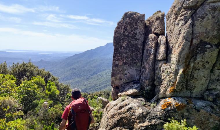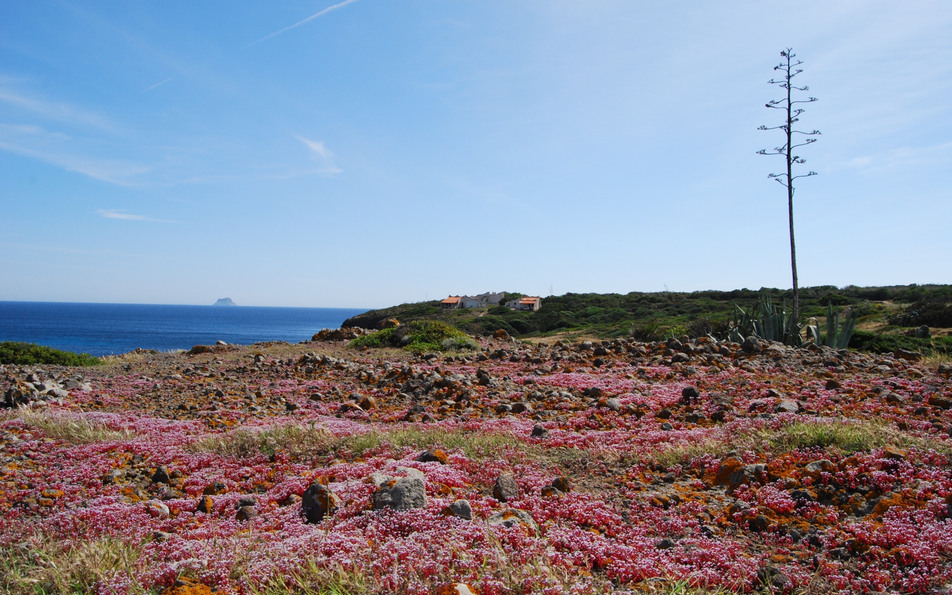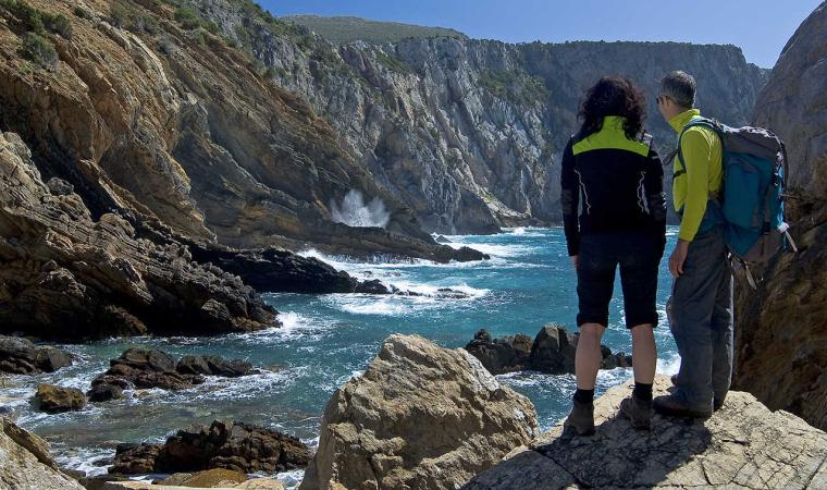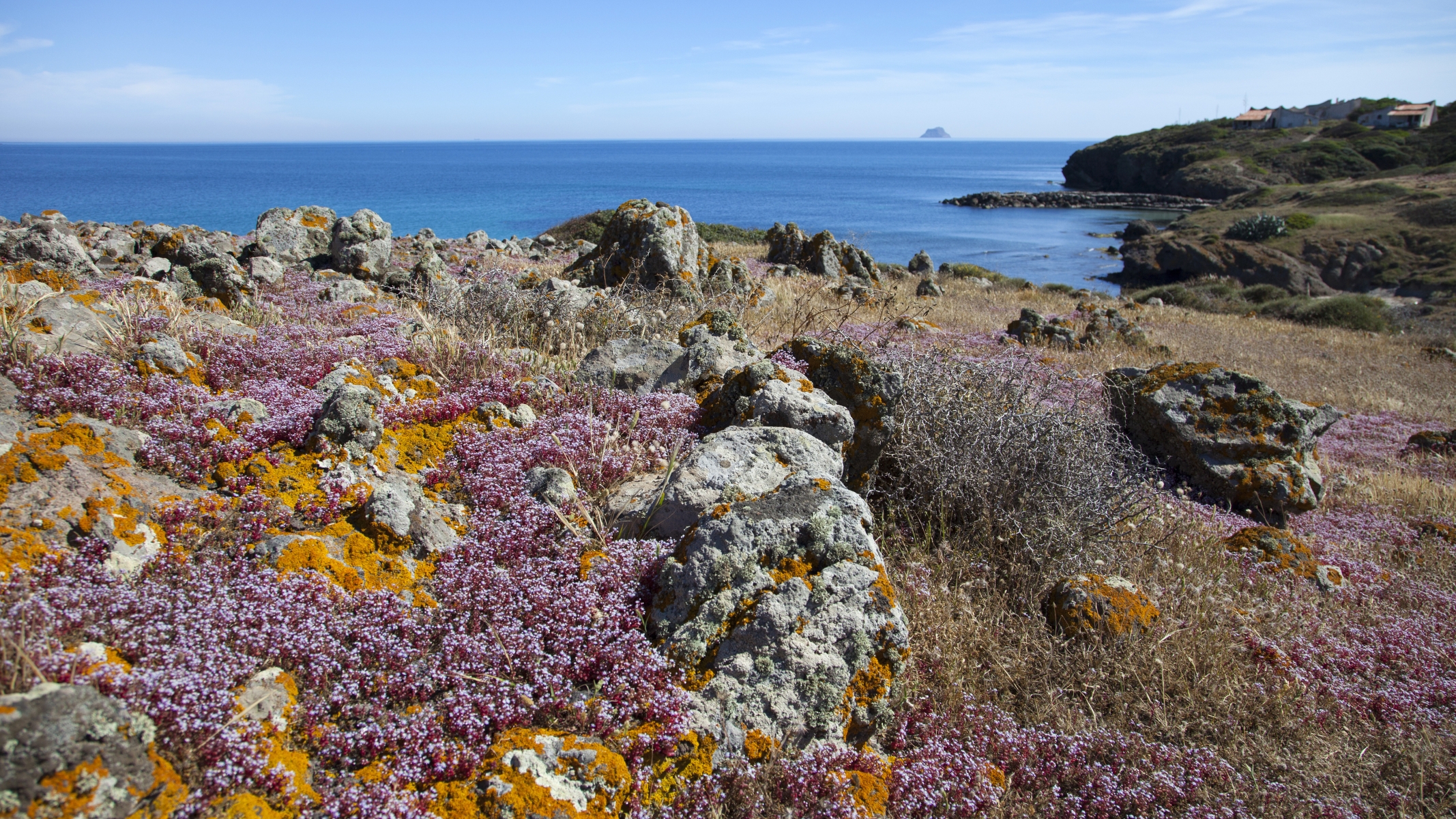 Le coste, alte e frastagliate a sud con falesie di trachite scura, più sabbiose a nord, hanno fondali ideali per immersioni. Portixeddu è la spiaggetta più vicina alla città, contornata da rocce chiare e verde di rarissimi ginepri fenici, secolari palme nane ed essenze mediterranee. È di ciottoli, come la più grande Turri. Mentre Maladroxa è una distesa di sabbia grigia e sottile: dal suo fondale emergono acque termali, sfruttate già dai romani. Superati il promontorio Serra de is tres Portus e lo stagno di santa Caterina, dove nidificano cavaliere d’Italia e fenicottero, arriverai all’ampia e sinuosa spiaggia di Coqquaddus. Sulla scogliera di is Praneddas (o arco ‘dei Baci’) starai su una terrazza, 200 metri sopra il mare. A largo degli scogli piatti e imbiancati di salsedine di Cala Sapone, già i fenici pescavano i tonni. Oggi osserverai i ruderi dell’ottocentesca tonnara. Vicine altre suggestive baie: le cale Grotta e della Signora. Capo Sperone è l’estrema punta a sud: mare azzurro cangiante e distese di peonie rosa. Sullo sfondo gli isolotti della Vacca e del Toro, aree protette dove vola il falco della regina, teatro della battaglia navale tra flotte romana e sardo-punica (258 a.C.). Più avanti la solitaria spiaggia s’Ega de is Tirias, da cui visitare in mountain bike o barca il selvaggio litorale fino a Portu de su Trigu.