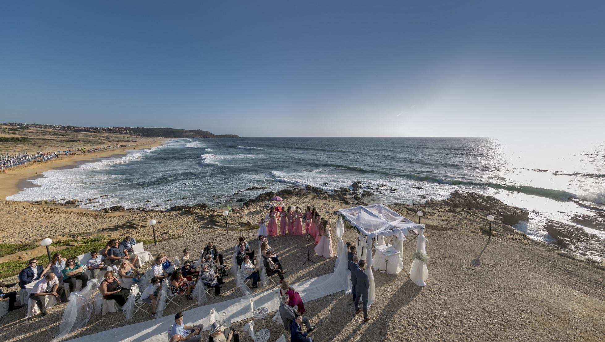 Le due mete ambite sulla costa opposta sono Alghero e Bosa, mentre nel vicino Goceano ci si sposa in boschi e foreste: come a sa Fraigada, tra Anela e Bultei. In Barbagia, nel cuore dell’Isola, tante sono le location, anche esclusive, per il giorno più bello. E poi c'è l’Ogliastra dal fascino selvaggio, amatissima per il grande passo. Nel Medio Campidano, elegante scenario matrimoniale è il castello di Sanluri. Una scala in pietra conduce al ‘palazzo’, mentre il patio è circondato da rigogliose piante, ideale per il banchetto nuziale all’aperto nelle stagioni più miti e per splendidi servizi fotografici. A pochi passi, immersa tra dolci colline, troverai un’altra oasi di pace e benessere perfetta per le celebrazioni: le antiche terme romane di santa Maria Aquas di Sardara, oggi luogo di trattamenti estetici e benessere. Il rito civile si svolge nel parco termale, quello religioso nell’intimo santuario medioevale.