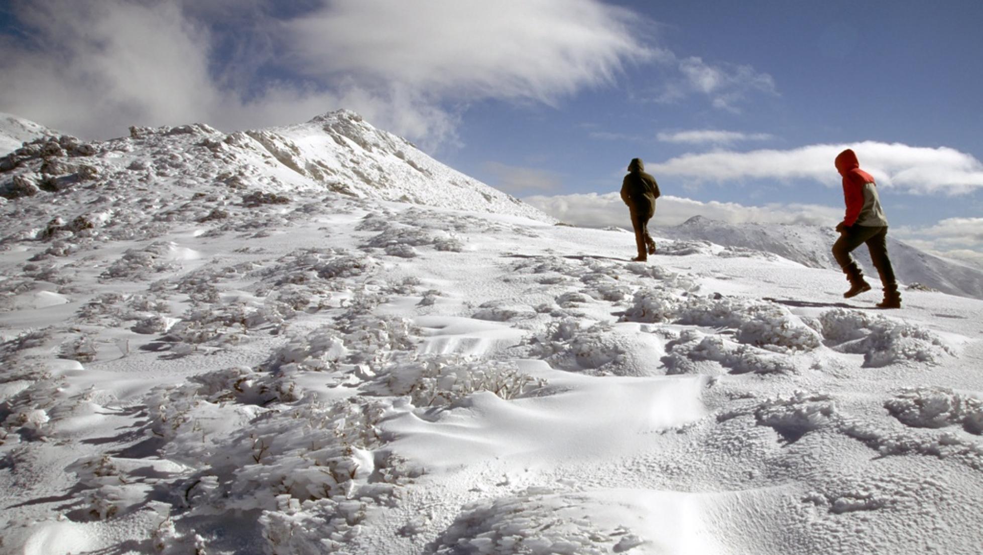 Sulle coste non nevica quasi mai. È storica la nevicata del 1956, con l’Isola totalmente imbiancata, dai monti al mare. Però a poca distanza da Cagliari, nevica sulle colline di Dolianova e nel parco dei Sette Fratelli, sui rilievi su cui si distende la foresta is Cannoneris (Pula) e sul monte Linas, nel Gerrei e nella Barbagia di Seulo, alle porte dell’Ogliastra. Invece la neve cade sempre abbondante nei monti più alti, e se arriva più a valle non è mai tanta da coprire completamente i paesaggi, è una pennellata di bianco che esalta i caratteri rudi dei luoghi isolani, pietrosi e granitici, la tipica vegetazione mediterranea di querce e olivi, profumati sottoboschi con bacche di mirto e corbezzoli, ginepri incagliati nel calcare del Supramonte e le spoglie creste del Monte Albo. Ed è pura poesia quando disegna i contorni dei nuraghi nelle colline più alte, i pozzi sacri della preistoria mimetizzati sulle alture, le domus de Janas scavate nei costoni montuosi, le tombe di Giganti sui pendii. È come un filo innevato steso sulla storia e sui miti che aleggiano sopra l’Isola.